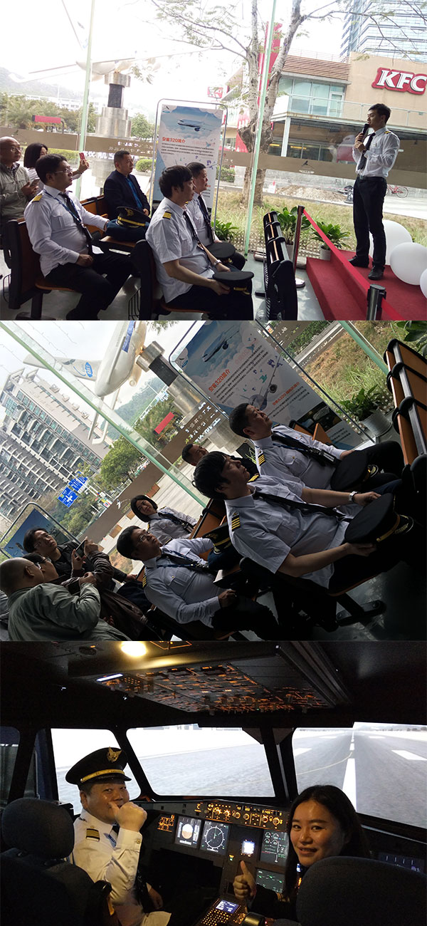 会议结束后,领导一行来到银英航空体验馆参观并体验飞行。由银英航空国际飞行教员陪同参观完体验馆各功能区,并在教学区向各领导讲解开始上飞行前的准备课程,且分组进行空客A-320以及塞斯纳172模拟机型的飞行体验。经过真实有趣的航空课程以及飞行体验后,各位领导给与我们航空科普项目极高的评价,并希望后续能在当地实现项目落地。